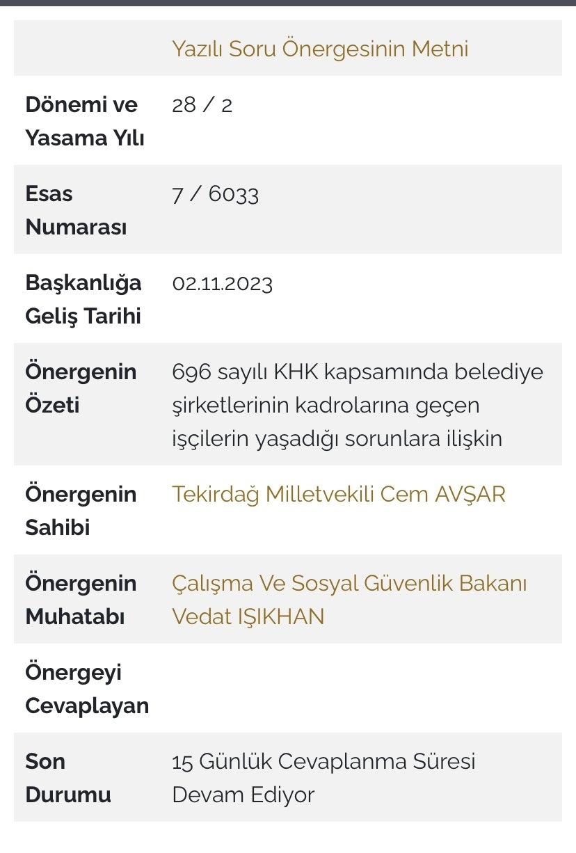 Belediye ve İl Özel İdare Şirketlerinde Görev Yapan Personelin Norm Kadro Talebi